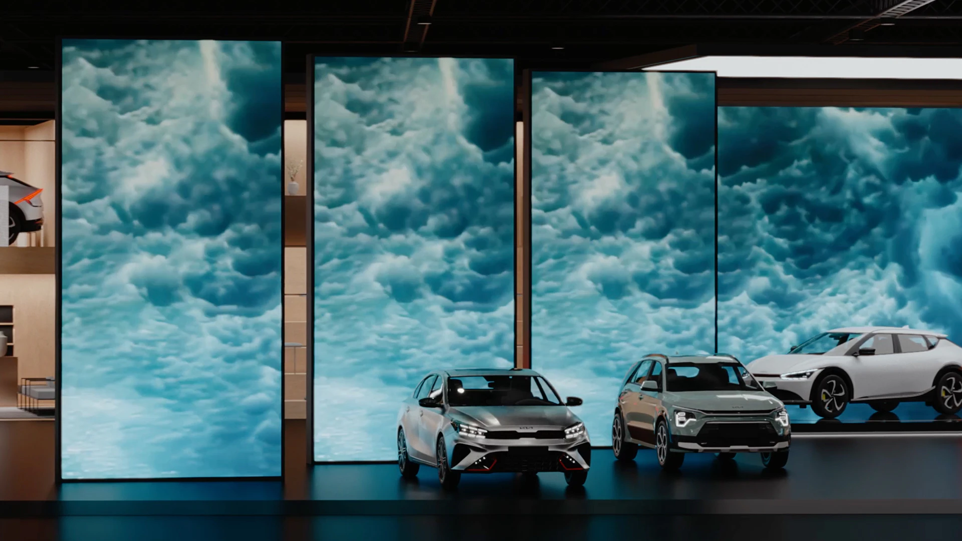 “Movement that inspires” applies to Kia driving and product experiences. But can it also take place in spatially limited spaces? “Windows of inspiration” is the name of Kia’s new trade show presence, which is defined not by architectural components but by moving media content. Constantly in motion, always changeable and sustainably renewable. Through changing content, the digital spaces inspire with new ideas through powerful messages and big pictures.