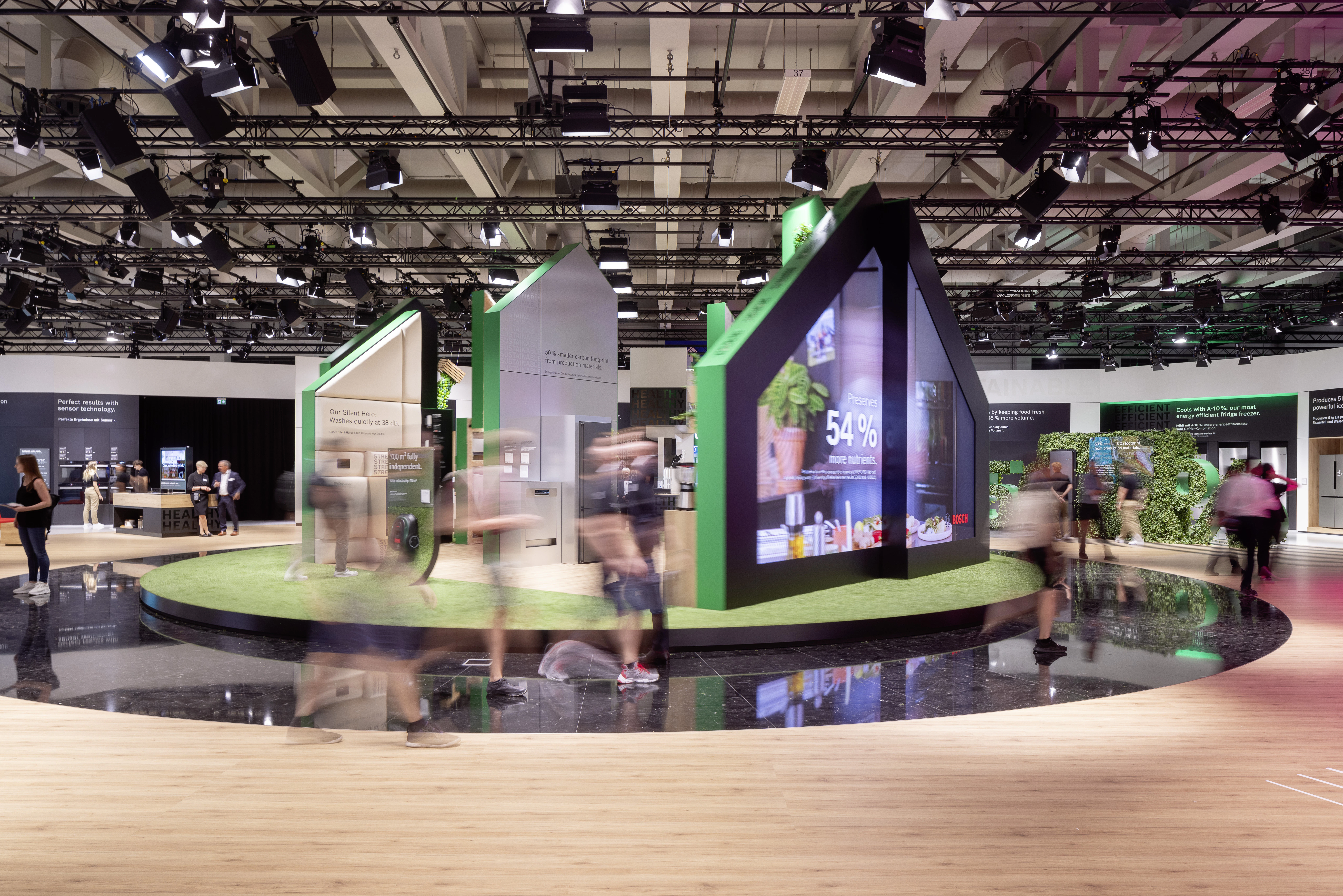 Seit 2022 steht der Bosch Markenraum auf der IFA in Berlin an der Spitze der Ausstellung. Gemeinsam mit Blackspace hat Bosch nicht nur die neuesten Entwicklungen im Bereich Haushaltsgeräte präsentiert, sondern die Besucher der IFA auch in das Gefühl eines Bosch-bereicherten Zuhauses eintauchen lassen und gezeigt, wie es den Alltag bereichert.